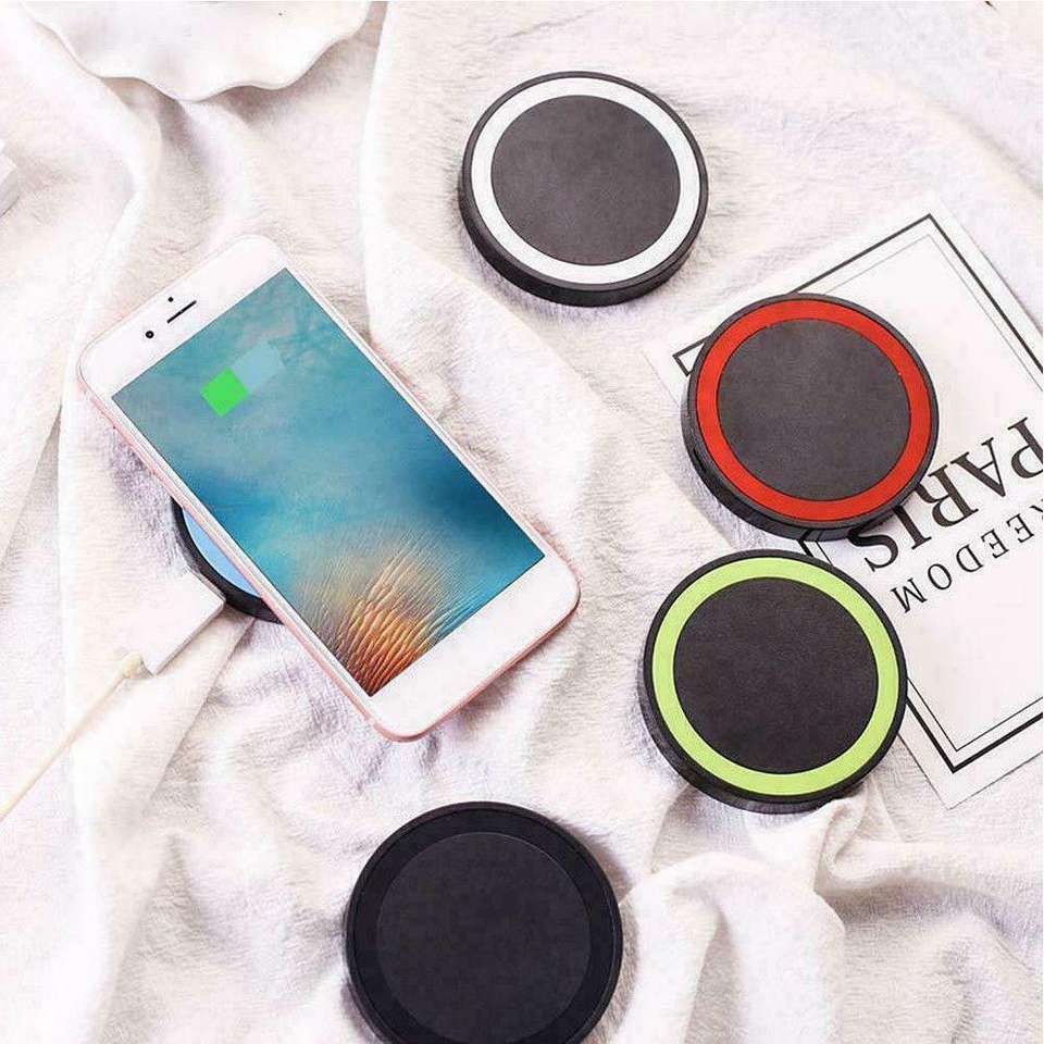 Suministro de fábrica Q5 cargador inalámbrico Mini almohadilla de carga inalámbrica rápida para Samsung mini almohadilla de carga inalámbrica portátil redonda