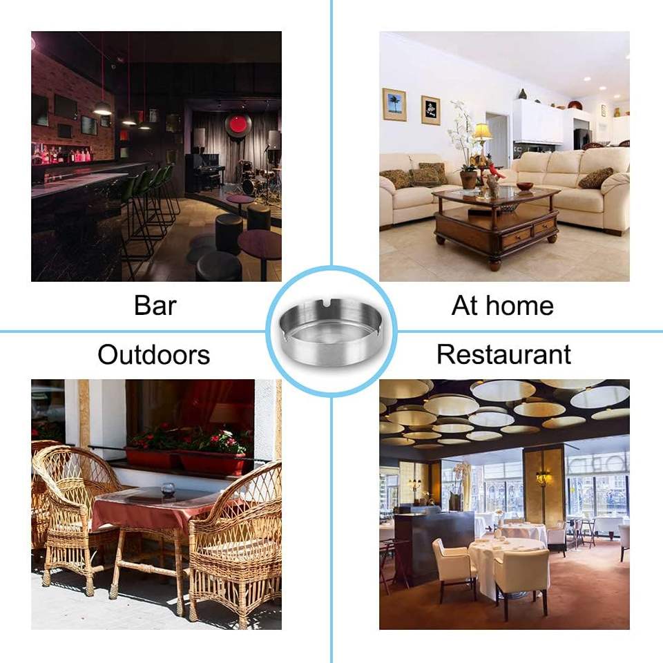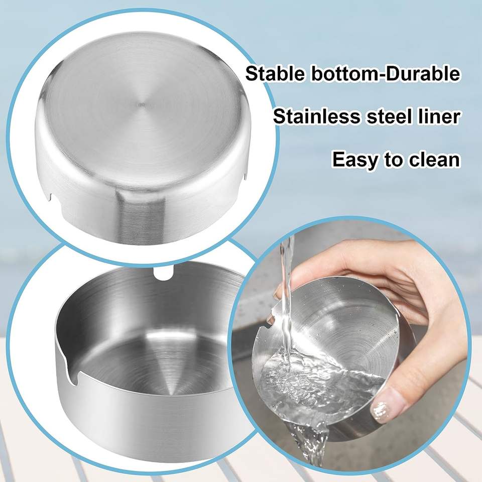 Cenicero de forma redonda de plata de suministro de fábrica Cenicero de acero inoxidable resistente a altas temperaturas sin tapa