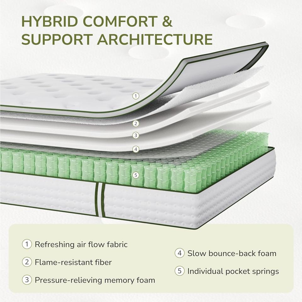 Material:Knitted Fabric+Memory Foam+ Latex+Pocket Spring