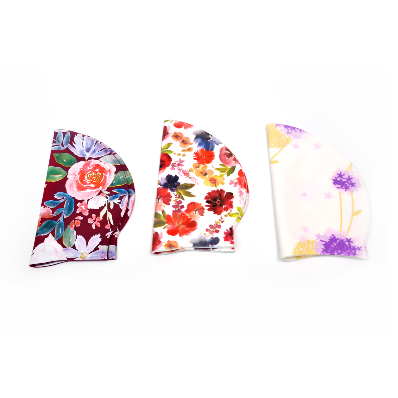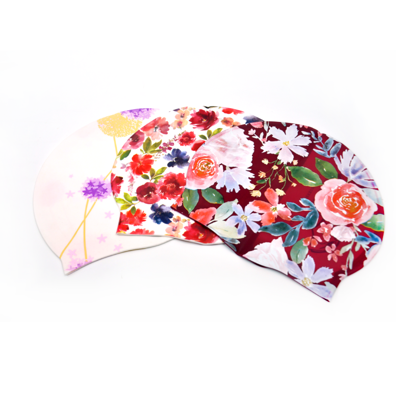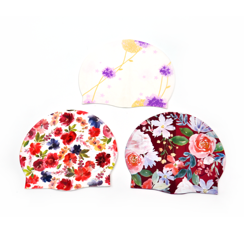 Gorros de natación de fábrica, gorro de natación con estampado de flores de diseño personalizado para rastas de pelo largo, gorros de natación de silicona a prueba de agua