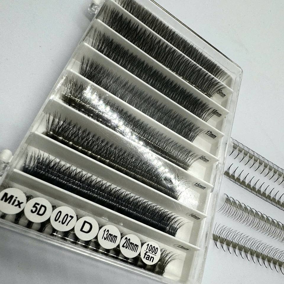 Pestañas de Volumen de Pelo Sintético de Fábrica, Longitudes Mixtas, Naturales, Largas, Negro Mate, Aplicación Uniforme, Hechas a Mano, Curvatura CC/DD/M/L