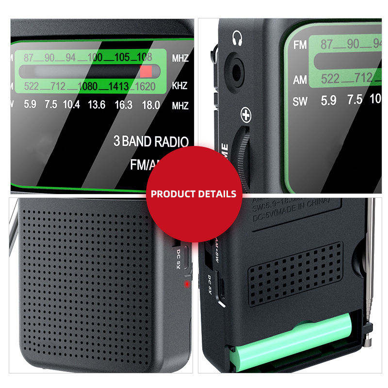 Radio Portátil TG77 AM FM SW con Pantalla HD de Plástico, Búsqueda Automática, para Interiores y Exteriores, Carga Tipo-C