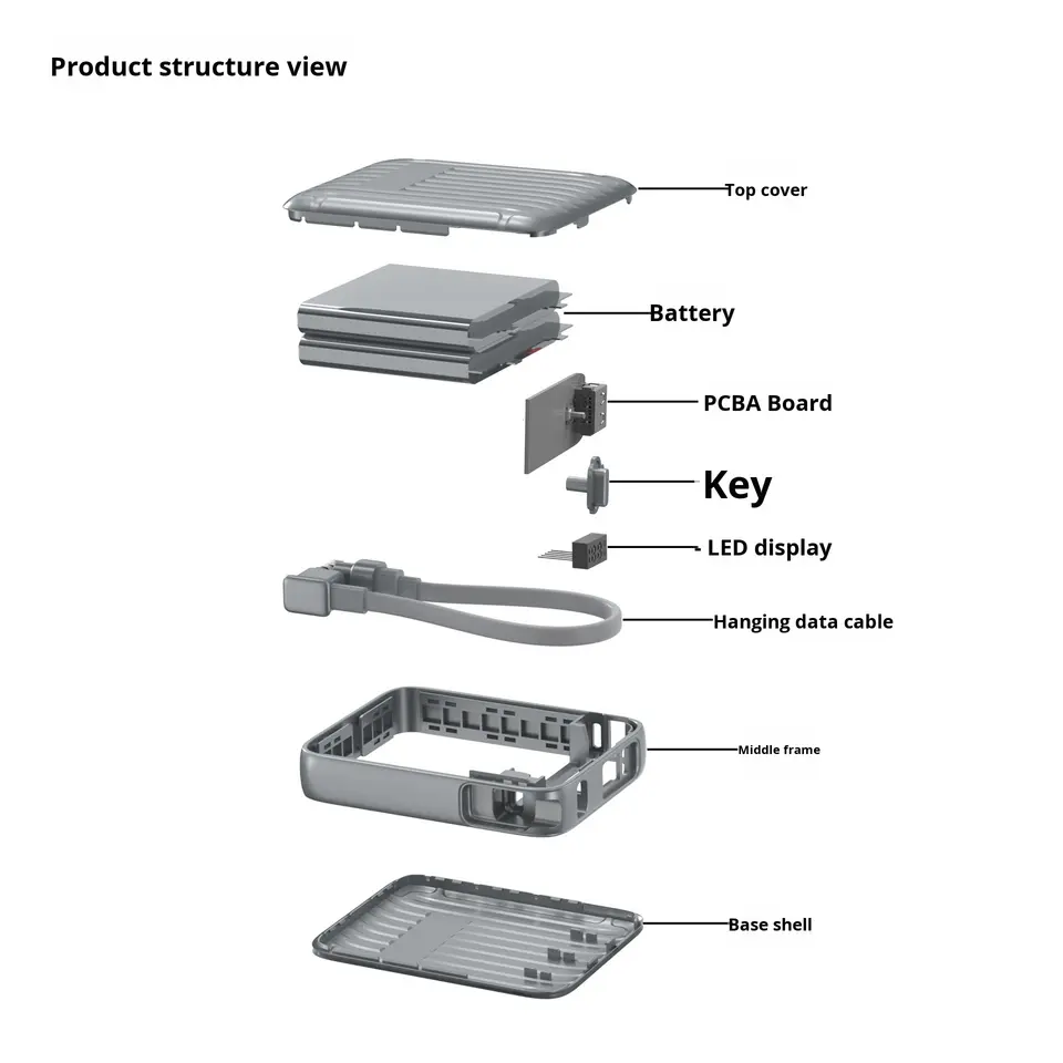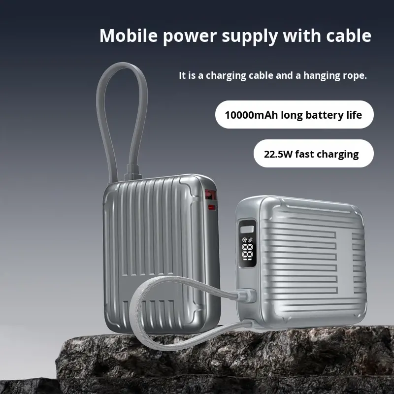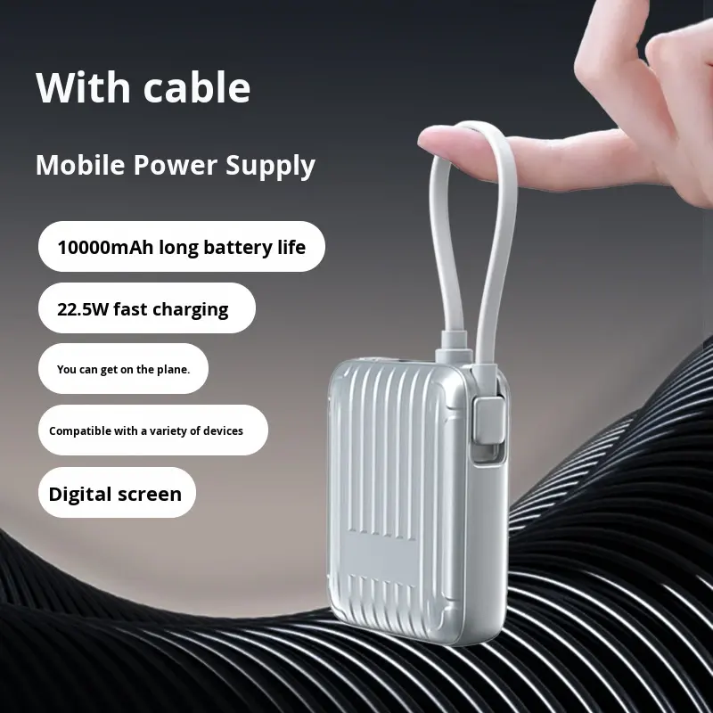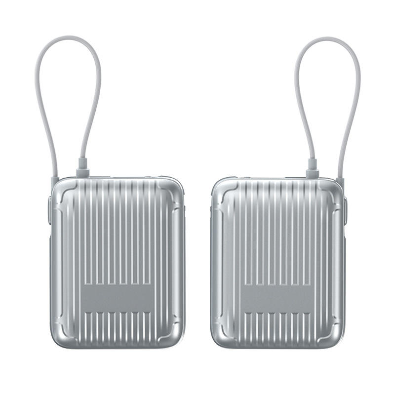 Cargador Portátil Mini Palm Power Bank Plateado con Textura de Fábrica, Cable Desmontable Universal, Carga Rápida PD, Multi-Puerto