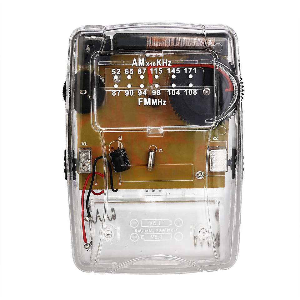Radio de Bolsillo AM FM Transparente de Fábrica, 110g, Funciona con Batería, Radio Portátil Retro con Sintonización por Puntero y Auriculares de Cristal