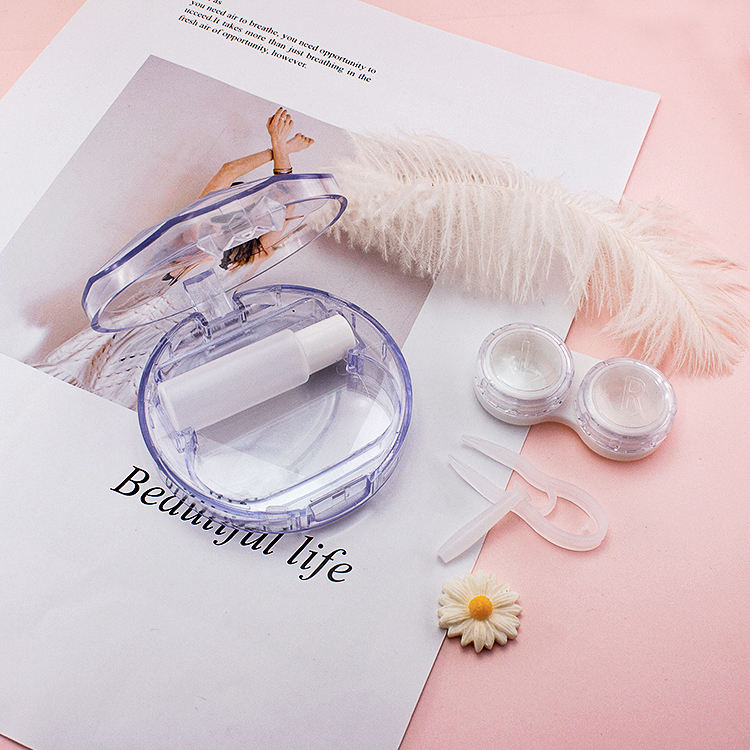 Kit de estuche para lentes de contacto transparente de fábrica, pinzas, soporte de varilla de succión, contenedor de solución, Mini estuche para lentes de contacto de colores