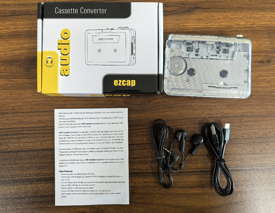 Mini grabadora de cinta transparente de fábrica, reproductor de casete USB con reproductor de cinta MP3, cinta grabadora a MP3 en Audacity Cassette Ezcap