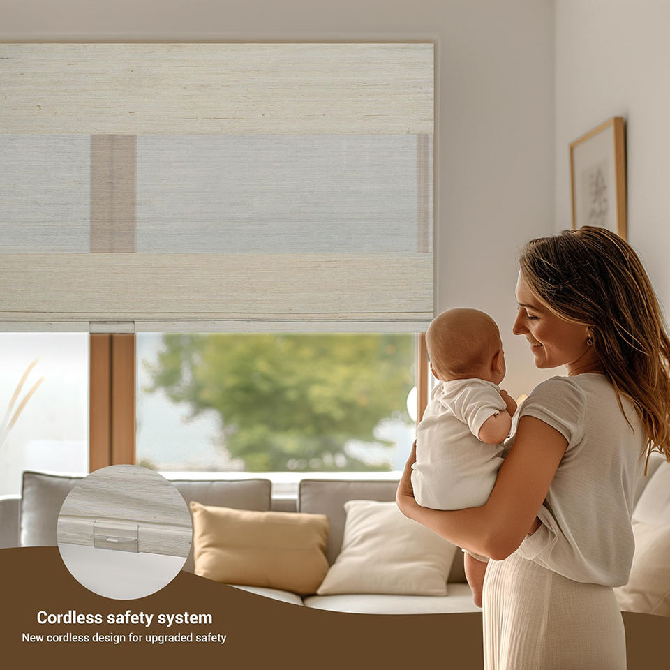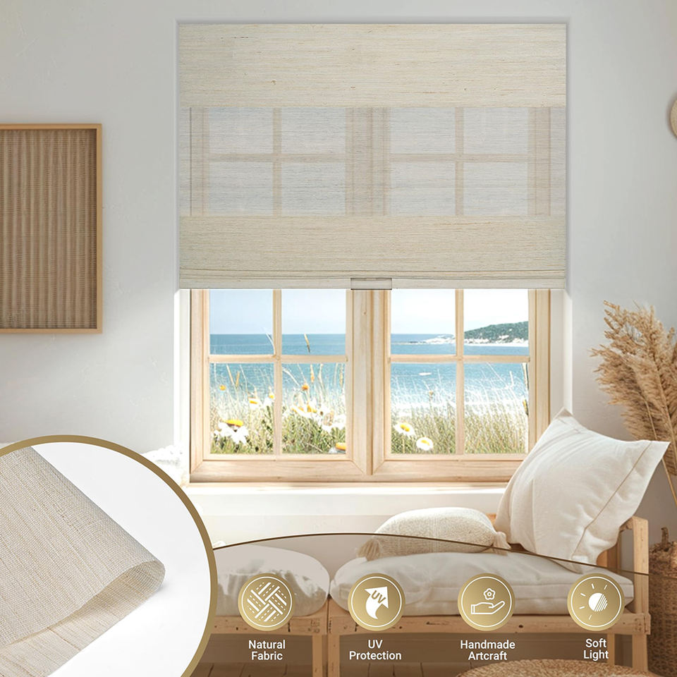 Persianas romanas con filtrado de luz de calidad de confianza de fábrica, cortinas romanas de tela de ramio Natural con protección Uv