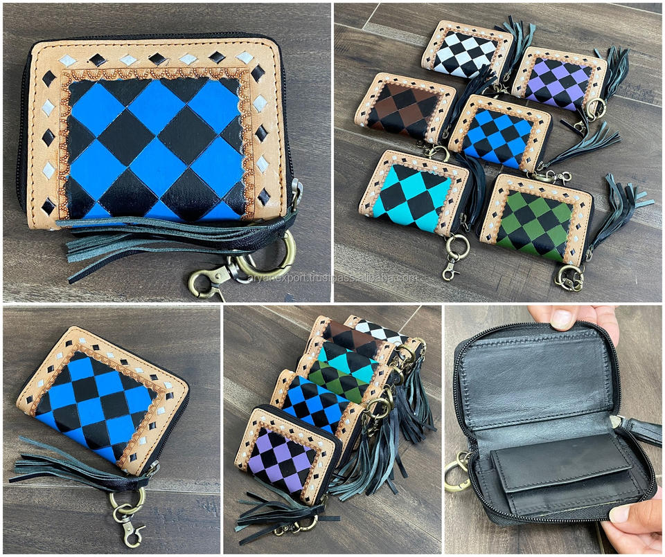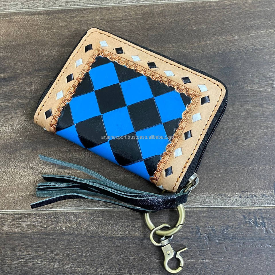 Product name:Checkered Design Genuine Leather Coin Purse Wallet