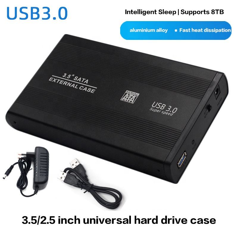 Venta al por mayor de fábrica Caja de disco duro portátil de metal de 3,5 pulgadas Caja de disco duro externo USB 3,0 a SATA