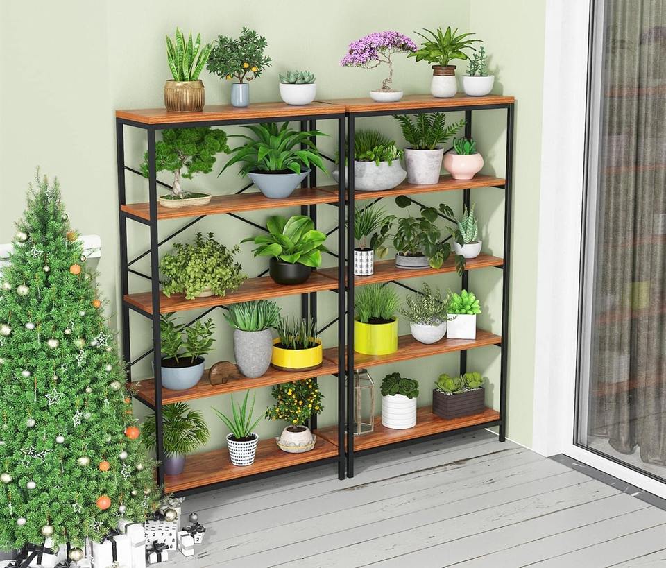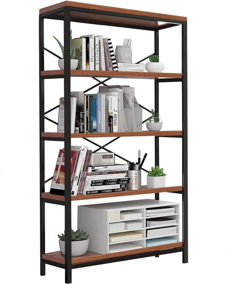 Fábrica al por mayor de 5 niveles de diseño moderno marco de metal marrón estanterías 58 \ "H escalera estanterías hogar Oficina muebles sala de estar