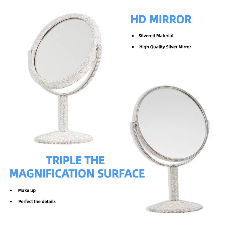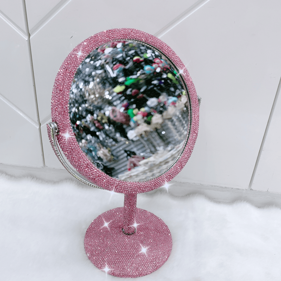 Fábrica al por mayor 5D diamante pintura espejo dos caras cristal mano maquillaje espejo con material de cristal de diamantes de imitación