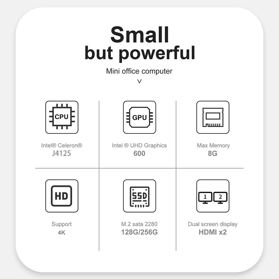 CPU:J4125 (4C/4T, caché de 4M, 2,0 GHz hasta 2,7 GHz)
