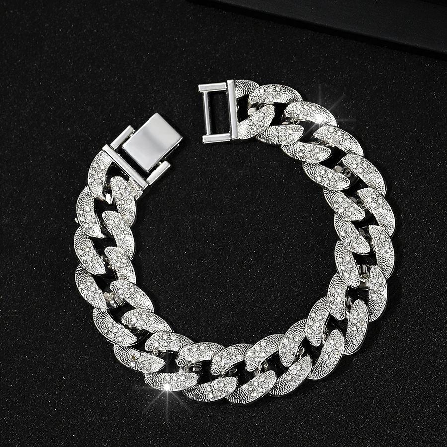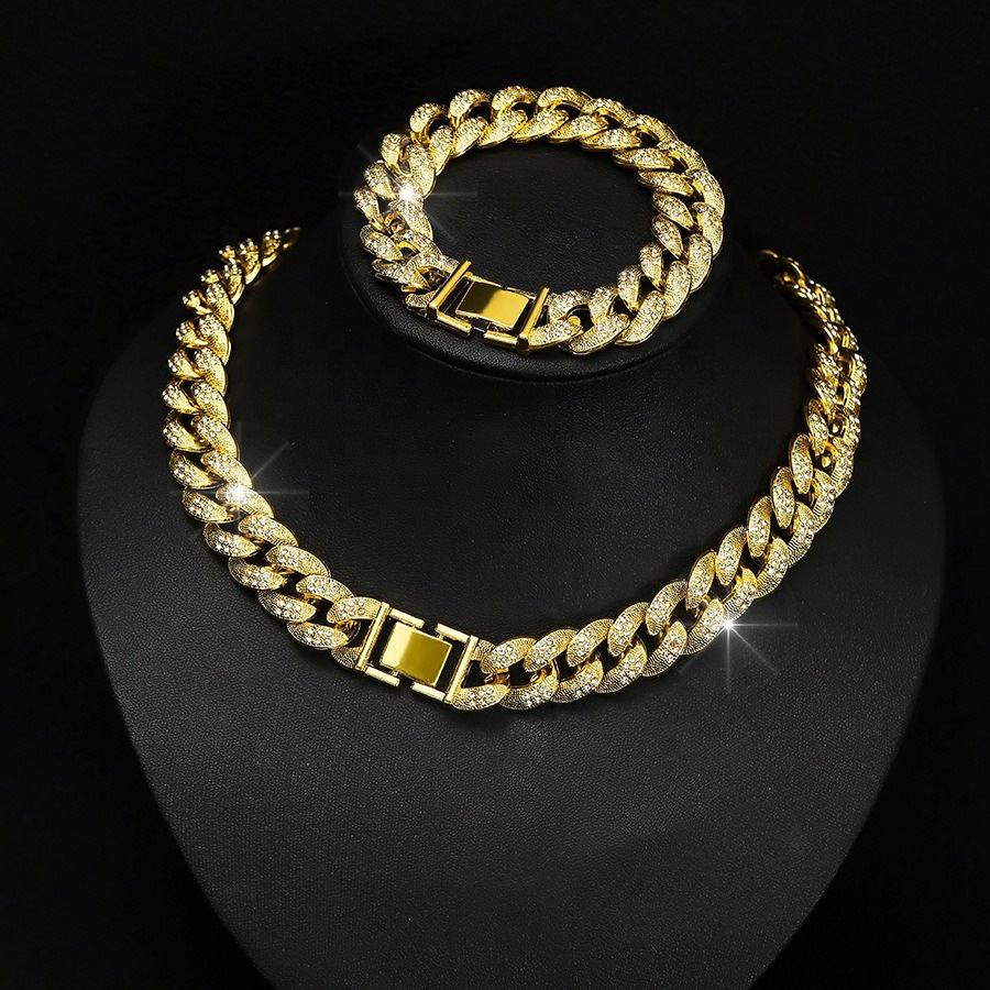 Conjunto de joyería de pulsera y collar de cadena cubana de hip hop
