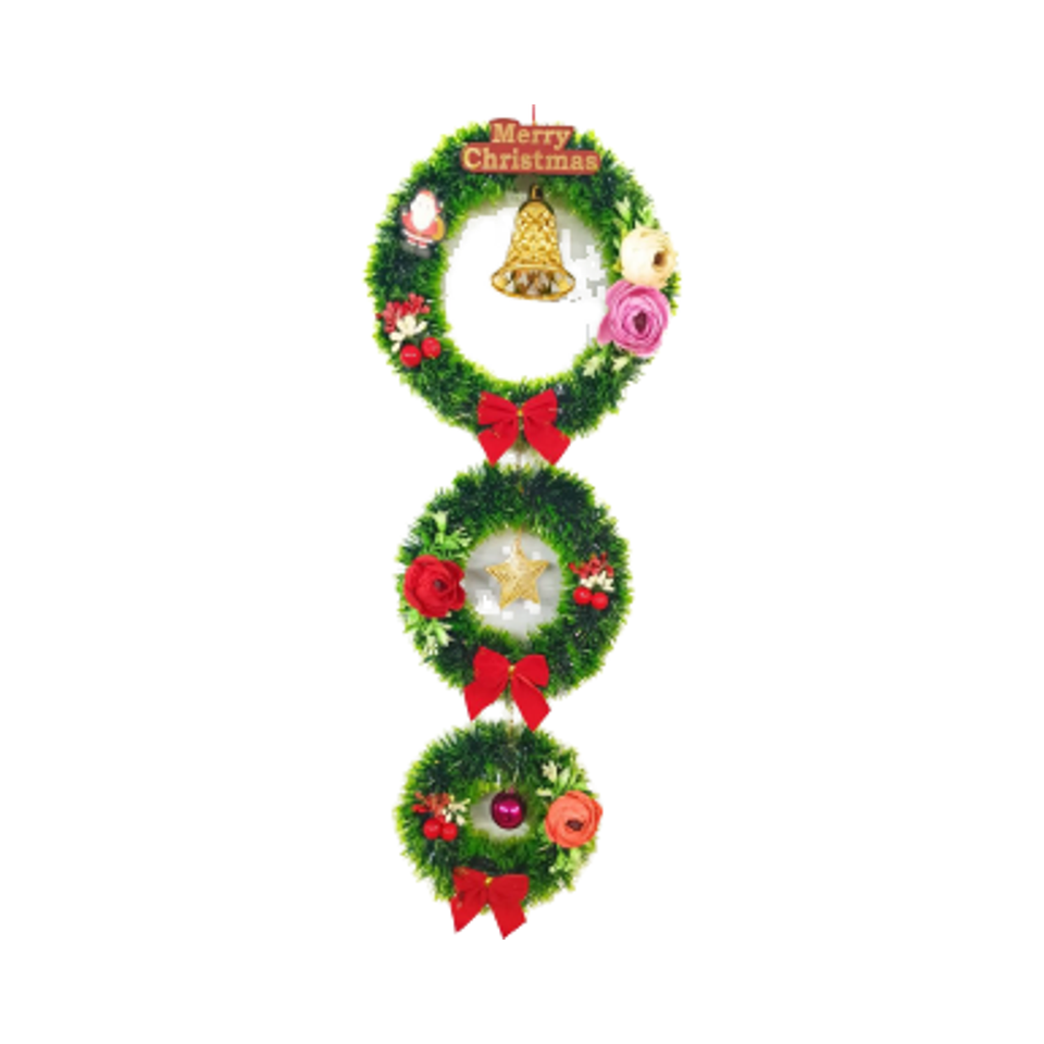 Guirnaldas Navideñas de Triple Aro con Piñas y Lazo, Luces LED, Ecológicas y Duraderas, Decoración de 15 Pulgadas, Venta al por Mayor de Fábrica