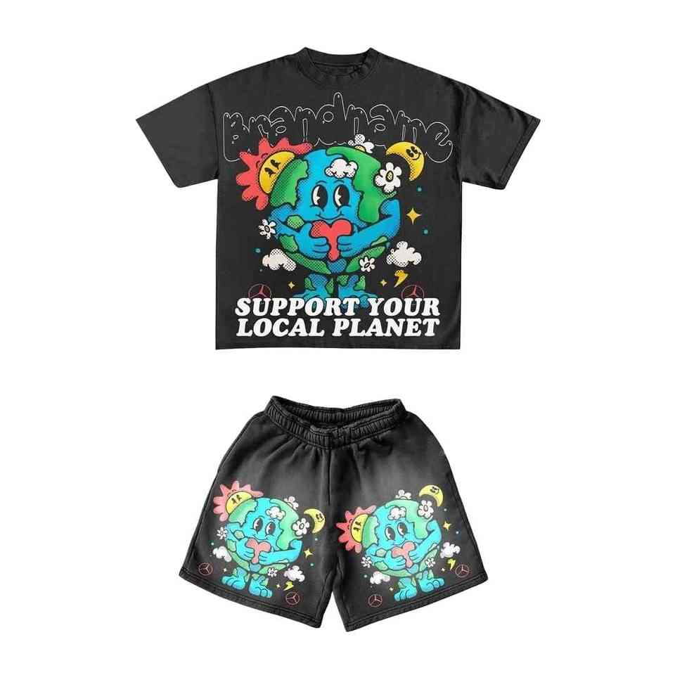 Venta al por mayor de fábrica: Conjunto de dos piezas de camiseta y pantalón corto de algodón para hombre, diseño personalizado con serigrafía, estilo urbano.