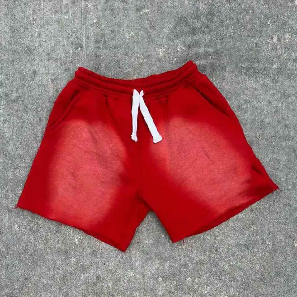 Venta al por mayor de fábrica, pantalones cortos con logotipo personalizado, pantalones cortos desgastados de algodón con bordado, pantalones cortos de lavado ácido con borde cortado desteñido al sol para hombres