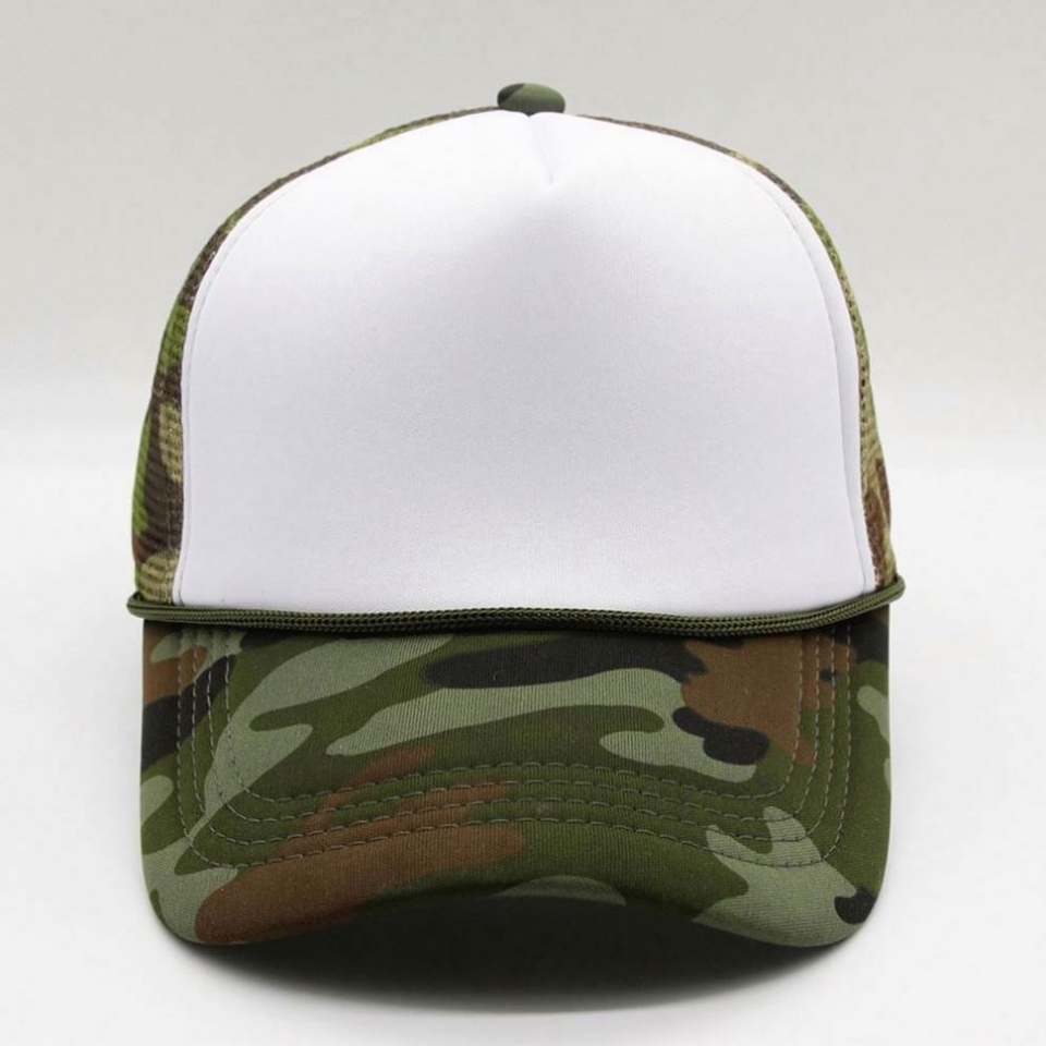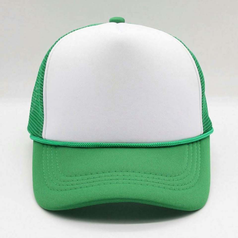Gorra de béisbol con logo personalizado al por mayor de fábrica, gorra trucker de malla frontal de espuma de color liso con cuerda, característica de tela común