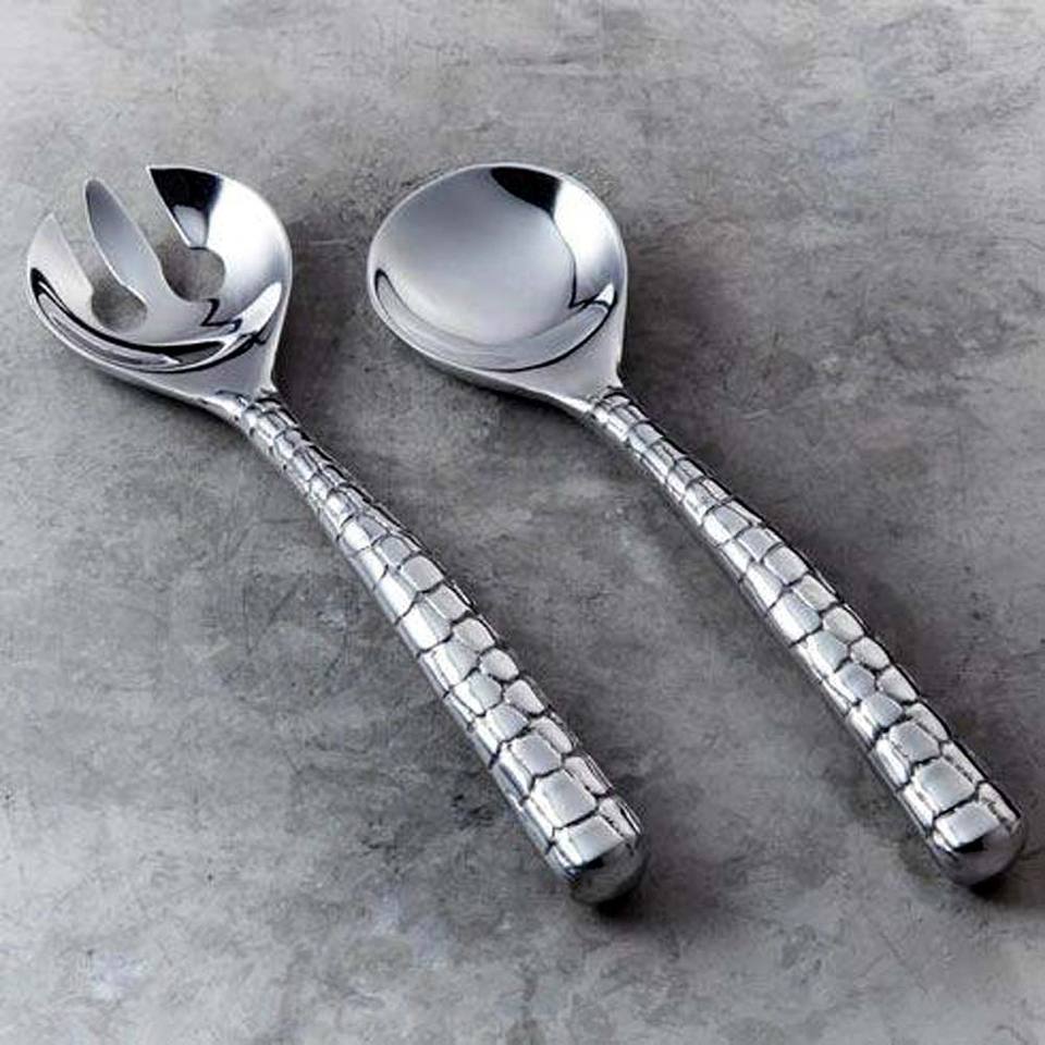 Cuchara y Tenedor de Acero Inoxidable Ecológicos con Logotipo Personalizado al por Mayor de Fábrica, Servidor de Ensalada para Bodas con Mango Largo de Diseño Irregular