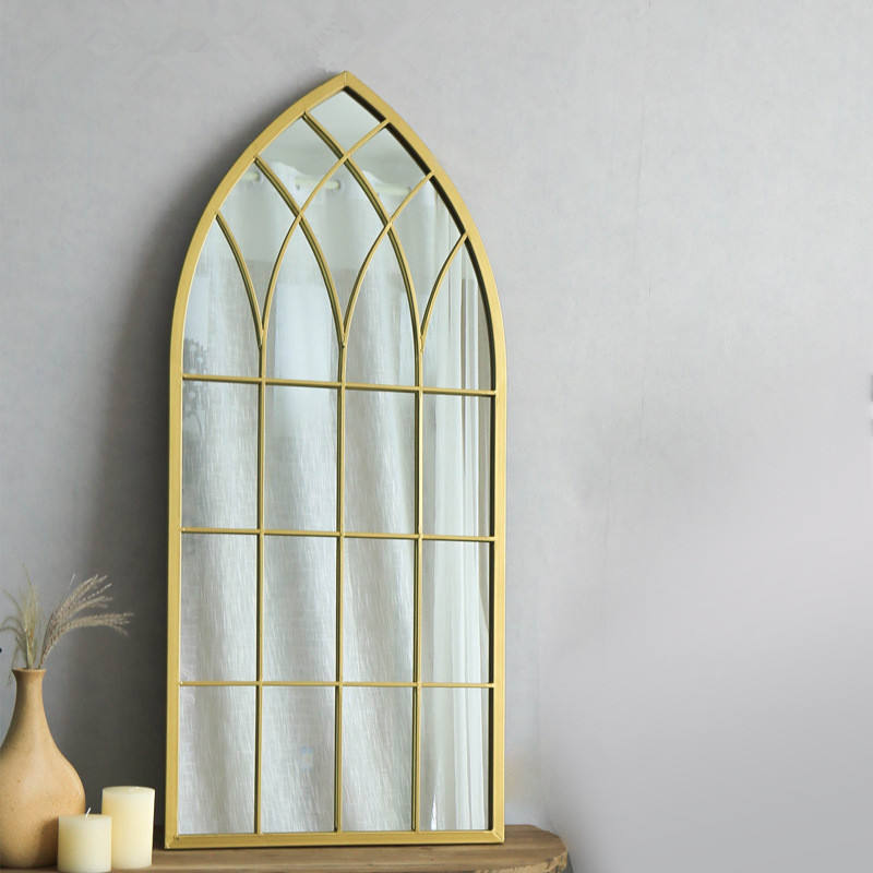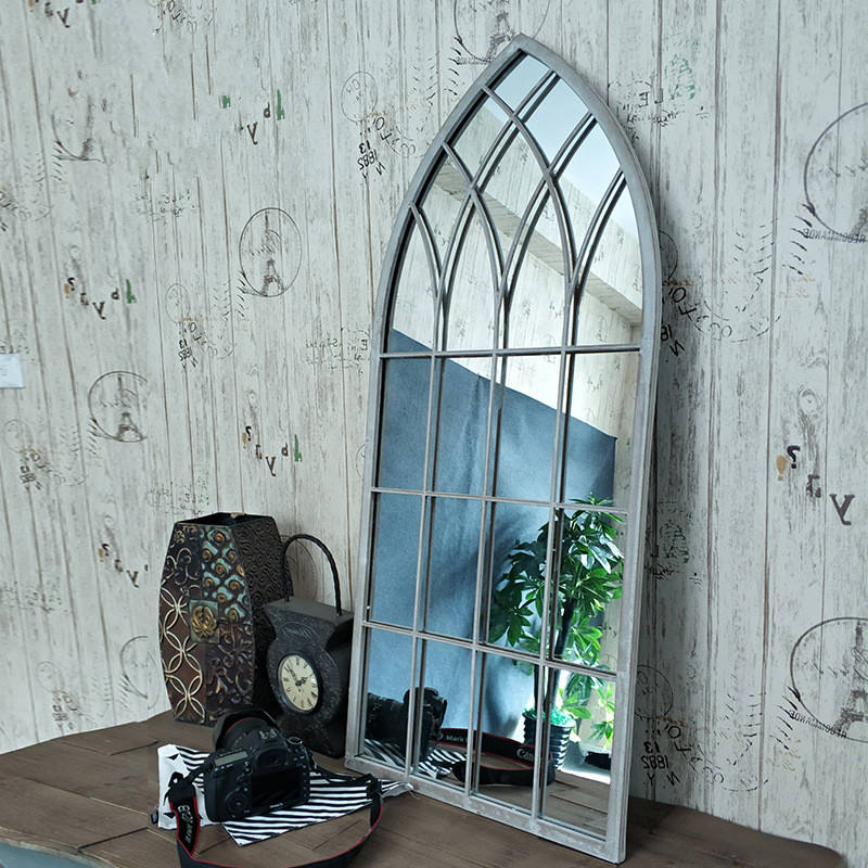 Fábrica al por mayor personalizado retro decorativo de longitud completa espejo gótico arco Estilo Casa de Campo ventana espejo decorativo de cristal