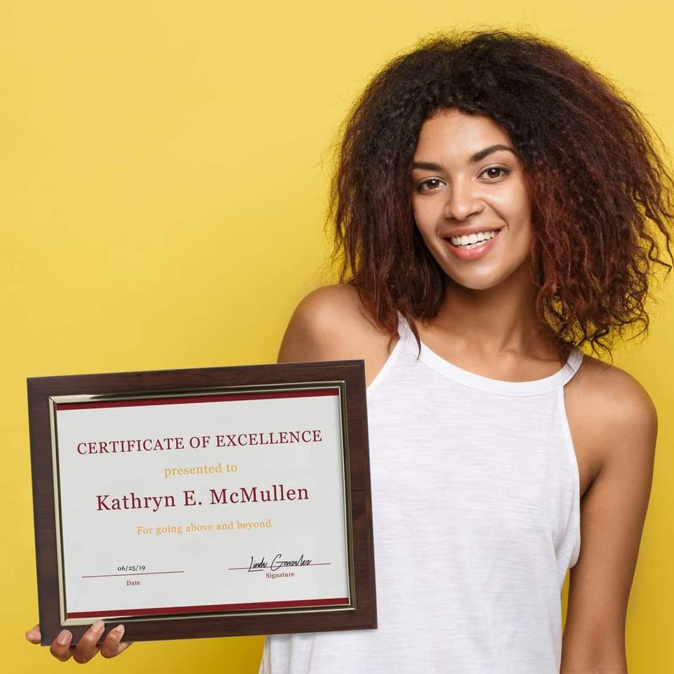Diploma, Certificado de Propiedad, Certificado de Joyería, etc.