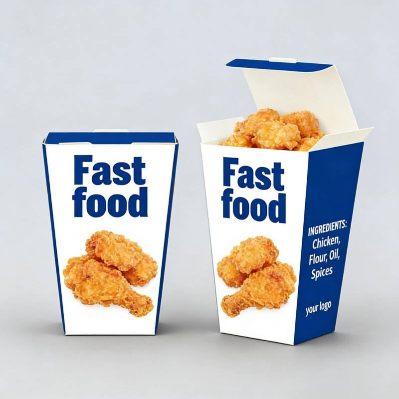 Cajas de cartón desechables personalizadas al por mayor de fábrica para pollo frito, palomitas, vasos de papel para snacks y cubos de papel.