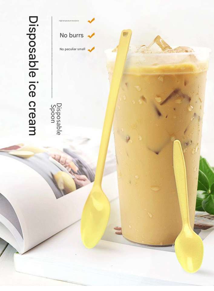 Cucharas de Café Desechables de Plástico al por Mayor de Fábrica con Acabado Espejo y Mango Largo para Fiestas