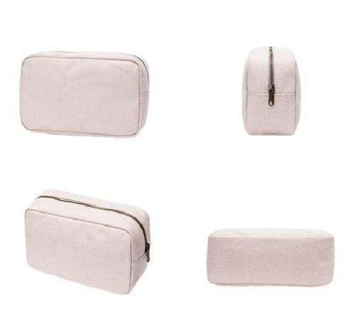 Venta al por mayor de fábrica, bolsa de cosméticos de lona ecológica de 12oz, bolsa de maquillaje de lino Unisex Natural, cremallera reutilizable de cáñamo para artículos de tocador