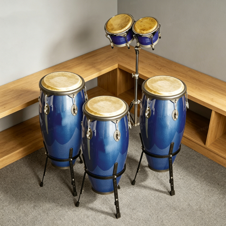 Venta al por Mayor de Fábrica: Exquisito Juego de Congas y Bongos Azules con Borde Negro
