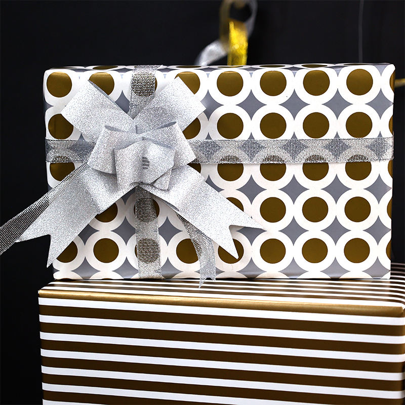 Fábrica al por mayor papel de regalo 43*300 cm cumpleaños Metal oro impresión papel de regalo embalaje