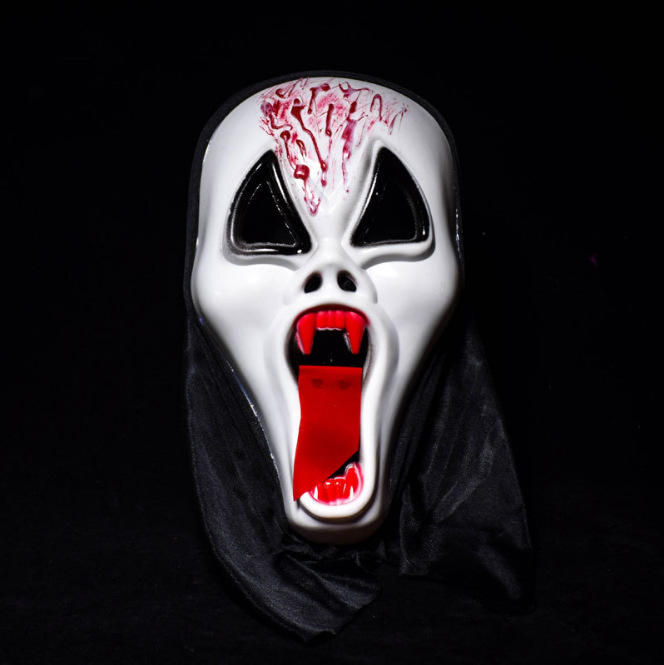 Color:Lengua roja y máscara facial blanca