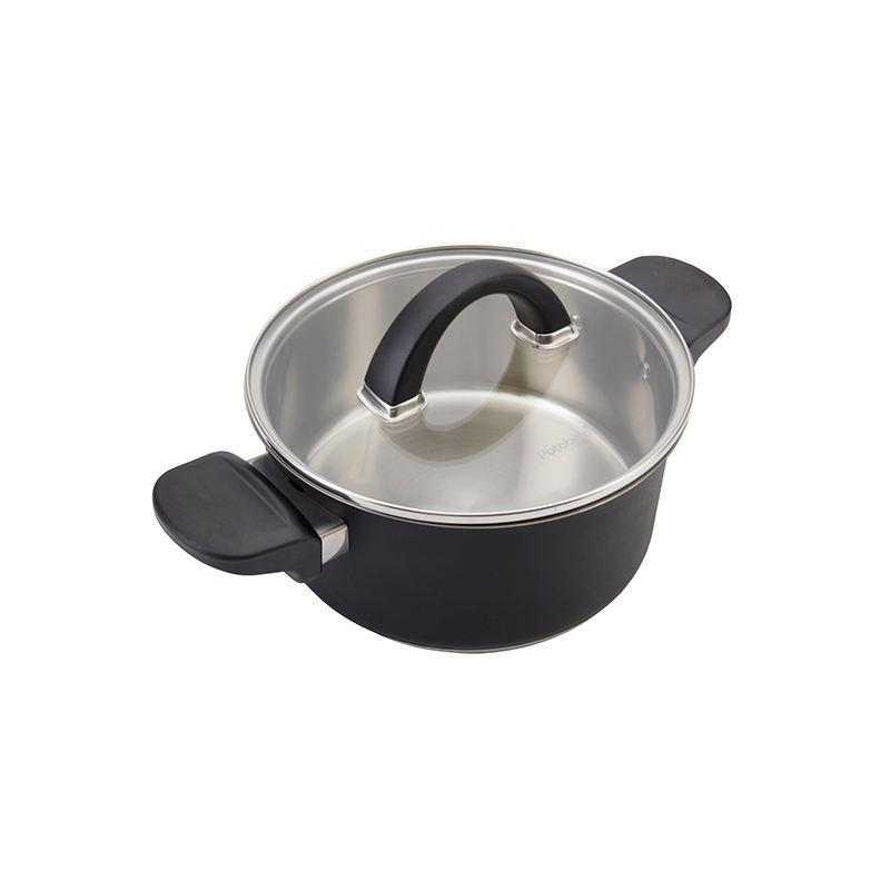 Conectado:Remache conectado entre la manija y la olla
