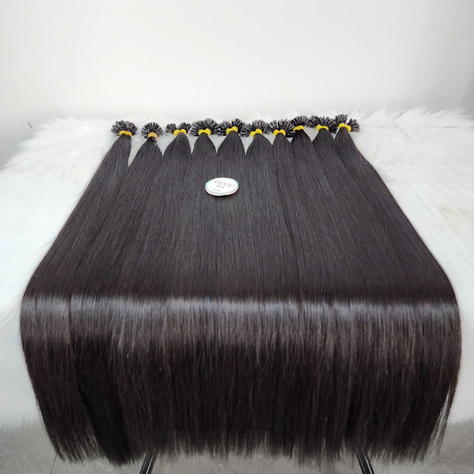 Venta al por mayor de fábrica Extensiones de cabello humano de alta calidad Cabello virgen Cutícula cruda Cinta alineada en U-tip/V-tip/k-tip Extensiones de cabello humano