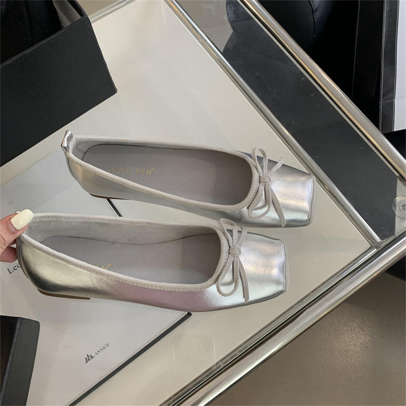 Venta al Por Mayor de Fábrica Zapatos Planos de Piel de Alta Calidad con Punta Cuadrada para Mujer Estilo Bailarina