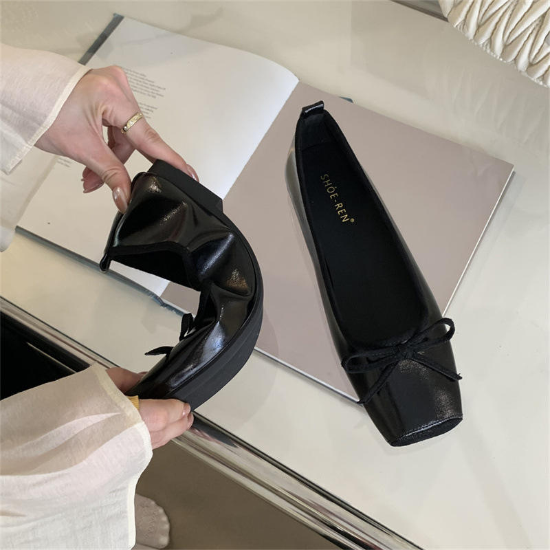 Zapatos Planos de Punta Cuadrada de Alta Calidad al por Mayor de Fábrica para Mujer, Zapatos de Bailarina de Cuero para Mujer