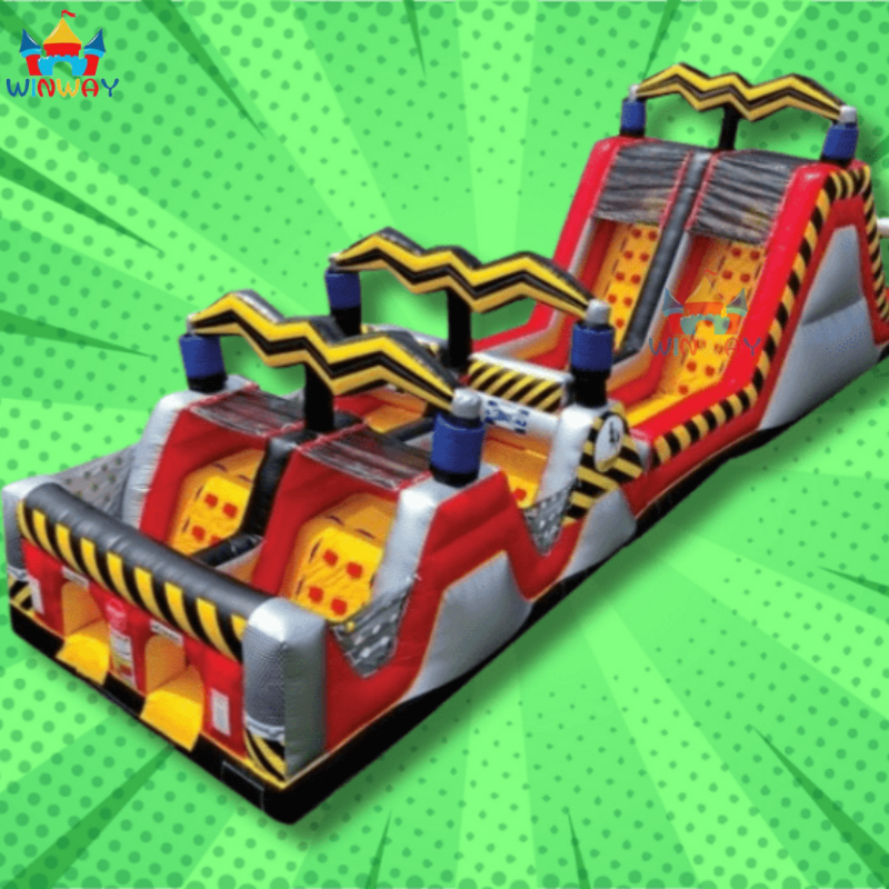 Venta al por mayor de fábrica: Pista de obstáculos inflable de alto voltaje con tobogán saltarín de 9x3m de PVC para diversión