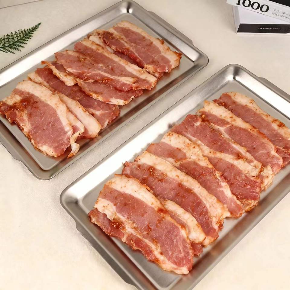 Fábrica al por mayor coreano Rectangular oro servir platos de cena de acero inoxidable barbacoa Sushi servir platos bandeja de aperitivos
