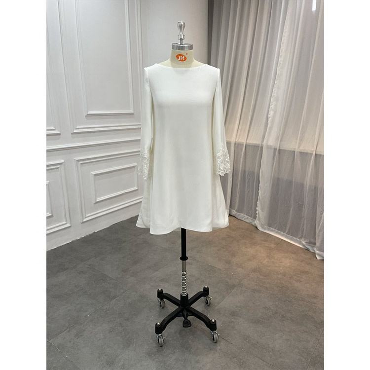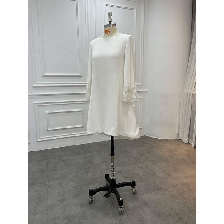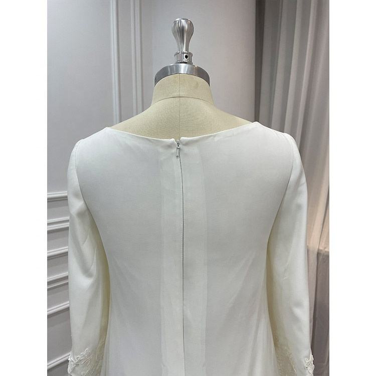Fábrica al por mayor último estilo simple satén manga larga encaje apliques vestido blanco informal para boda civil