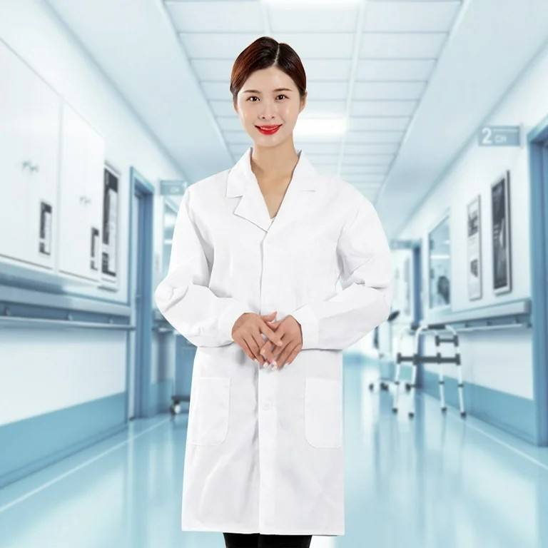 Venta al por mayor de fábrica de manga larga bata blanca antiestático médico productos farmacéuticos ropa de trabajo batas de laboratorio químico
