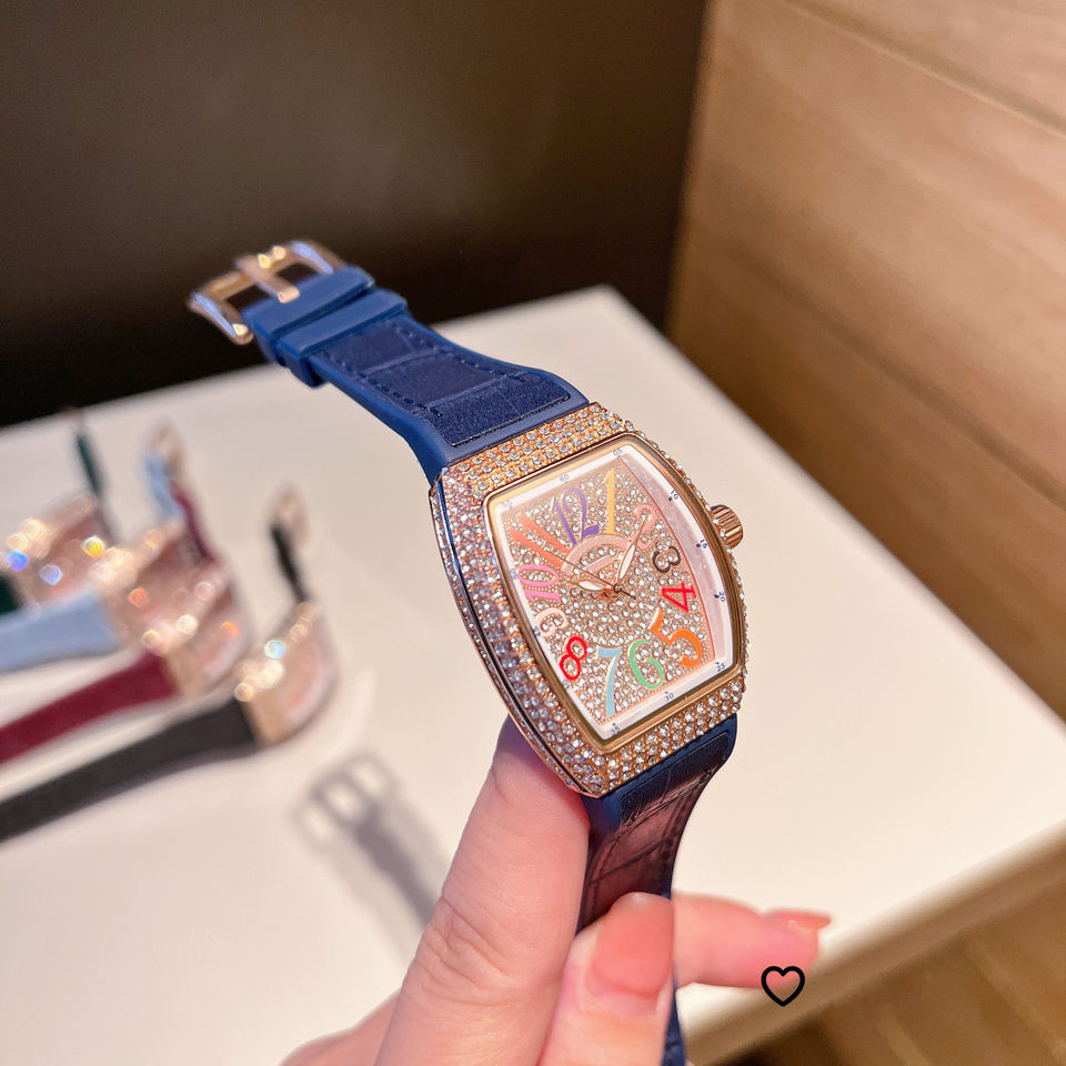 Fábrica al por mayor de lujo de gama alta ODM reloj de cuarzo logotipo personalizado incrustaciones bisel en forma de barril batería de larga duración suministro de alta calidad
