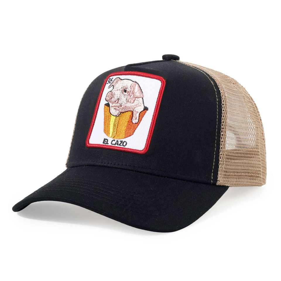 Gorra de béisbol popular al por mayor de fábrica con logo bordado personalizado, gorra de malla de dibujos animados, gorra de camionero con diseño de animales
