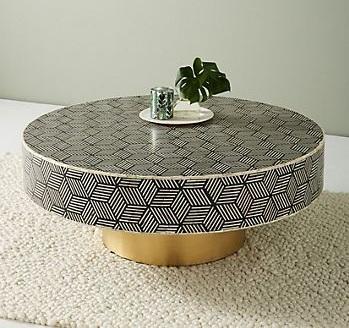 Precio al por mayor de fábrica, mesa de centro con incrustaciones de hueso, último diseño, forma redonda, mesa central hecha a mano, muebles decorativos con incrustaciones de hueso