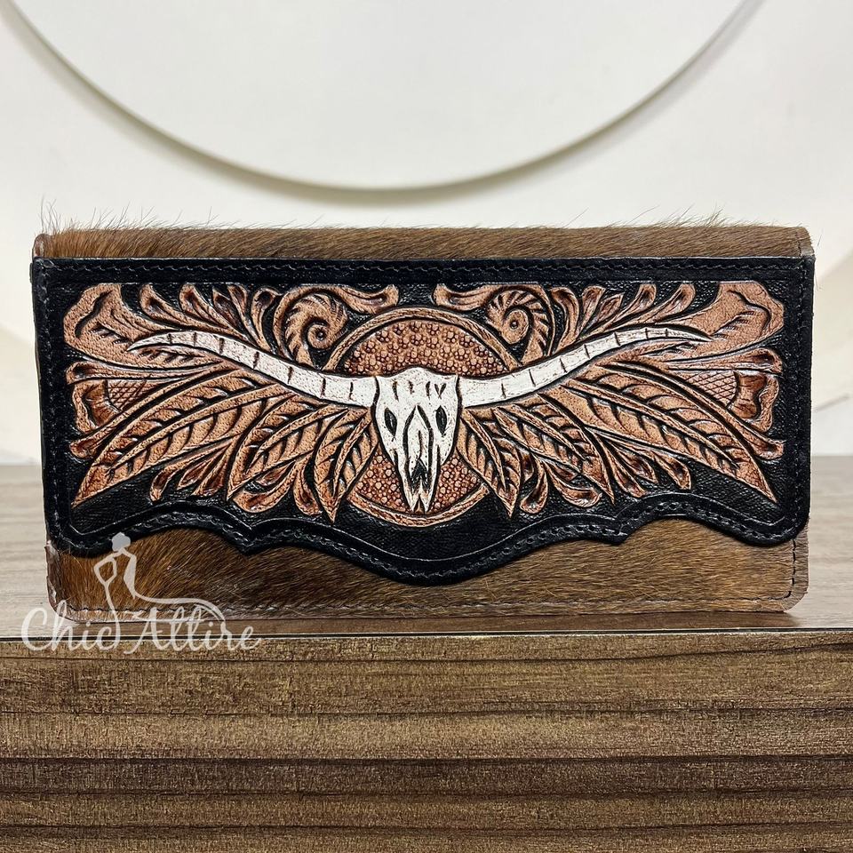 Nombre del producto:Cartera Bifold larga de cuero de vaca a mano