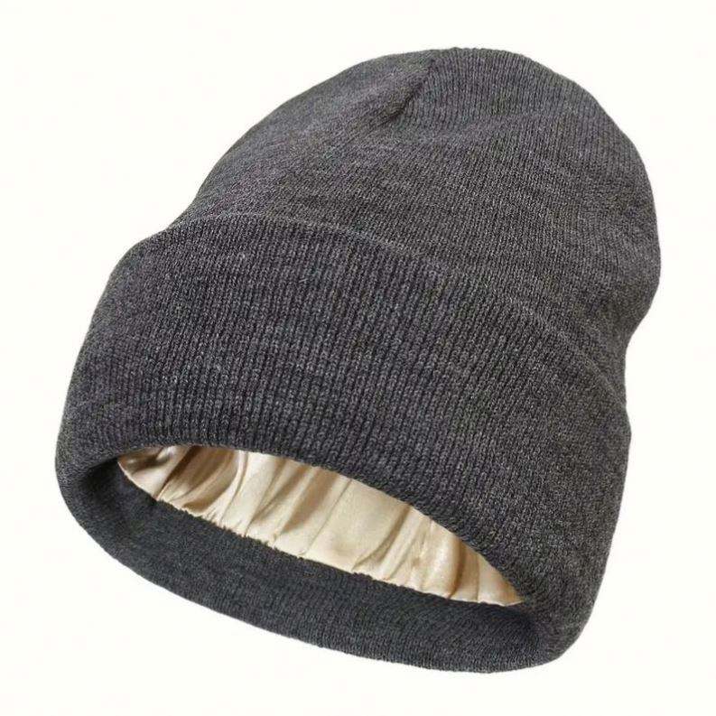 Gorro de Punto Acrílico 100% de Color Sólido, Estilo Y2K, con Forro de Satén Personalizado, Venta al Por Mayor de Fábrica