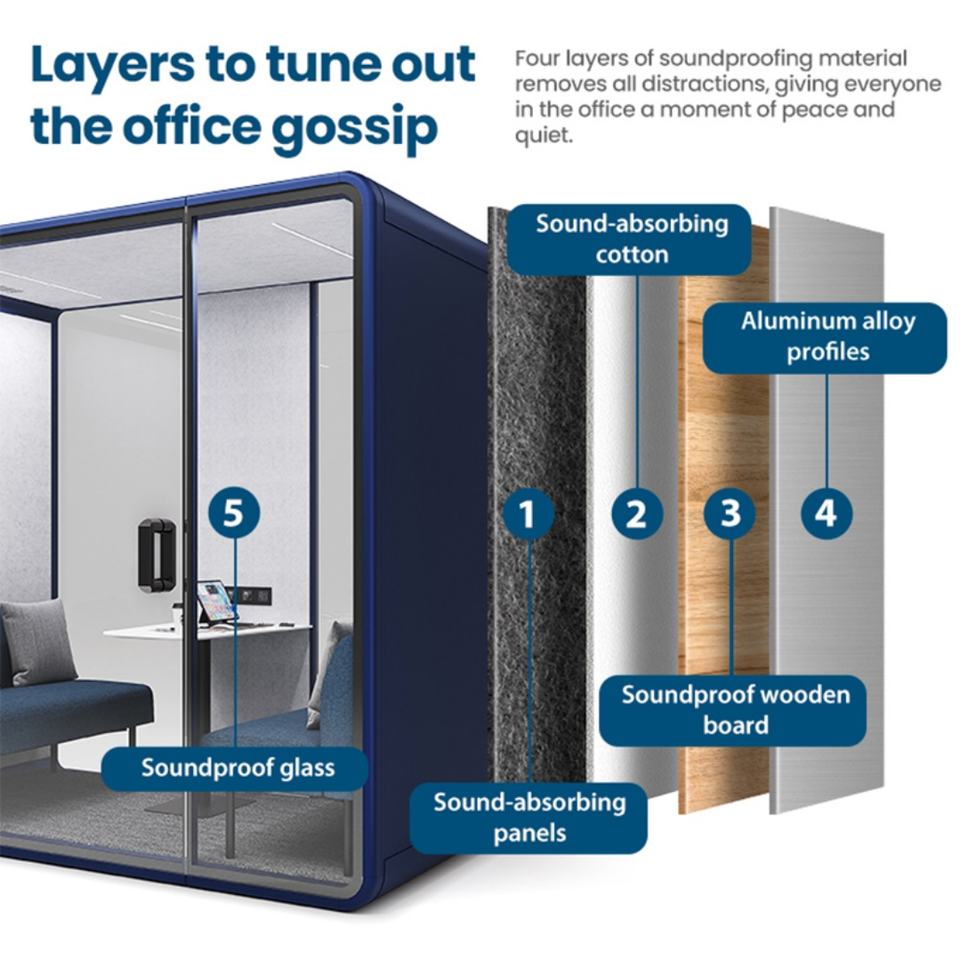 Cabina Insonorizada Móvil para 2-8 Personas, Ideal para Oficina en Casa o Reuniones, Venta al Por Mayor de Fábrica