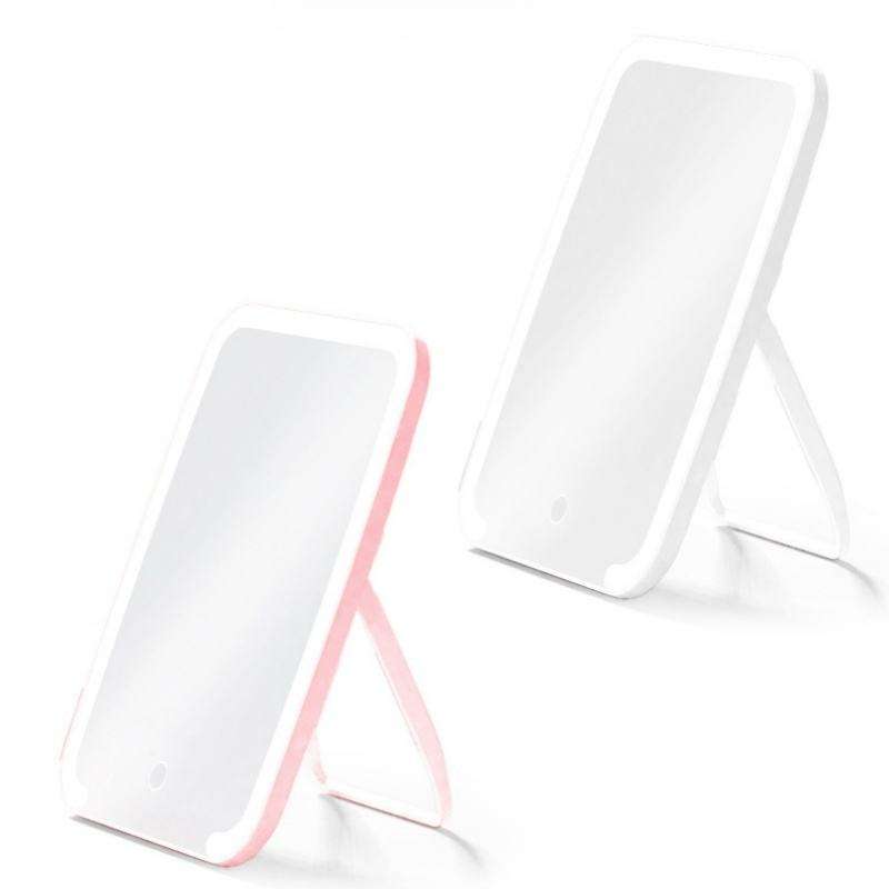 Fábrica al por mayor pantalla táctil de pie plegable tocador cosméticos espejo maquillaje espejo con luz LED