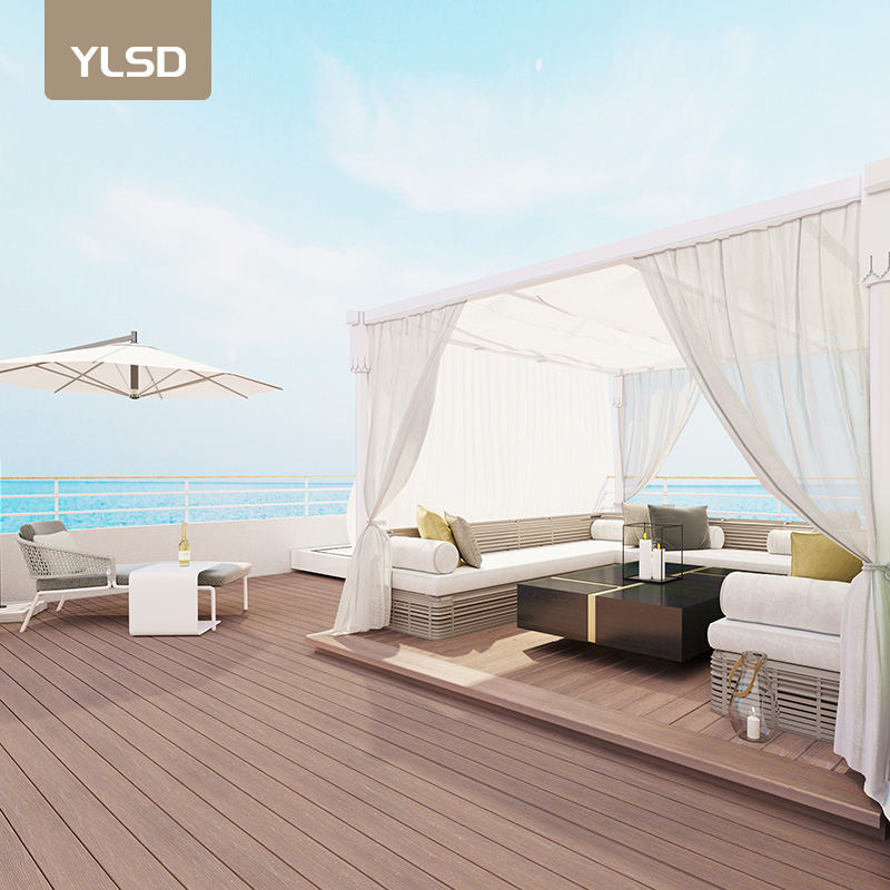 Fábrica al por mayor tradicional sólido estriado WPC Decking 140*25mm suelo de madera compuesta para restaurante al aire libre jardín gran oferta