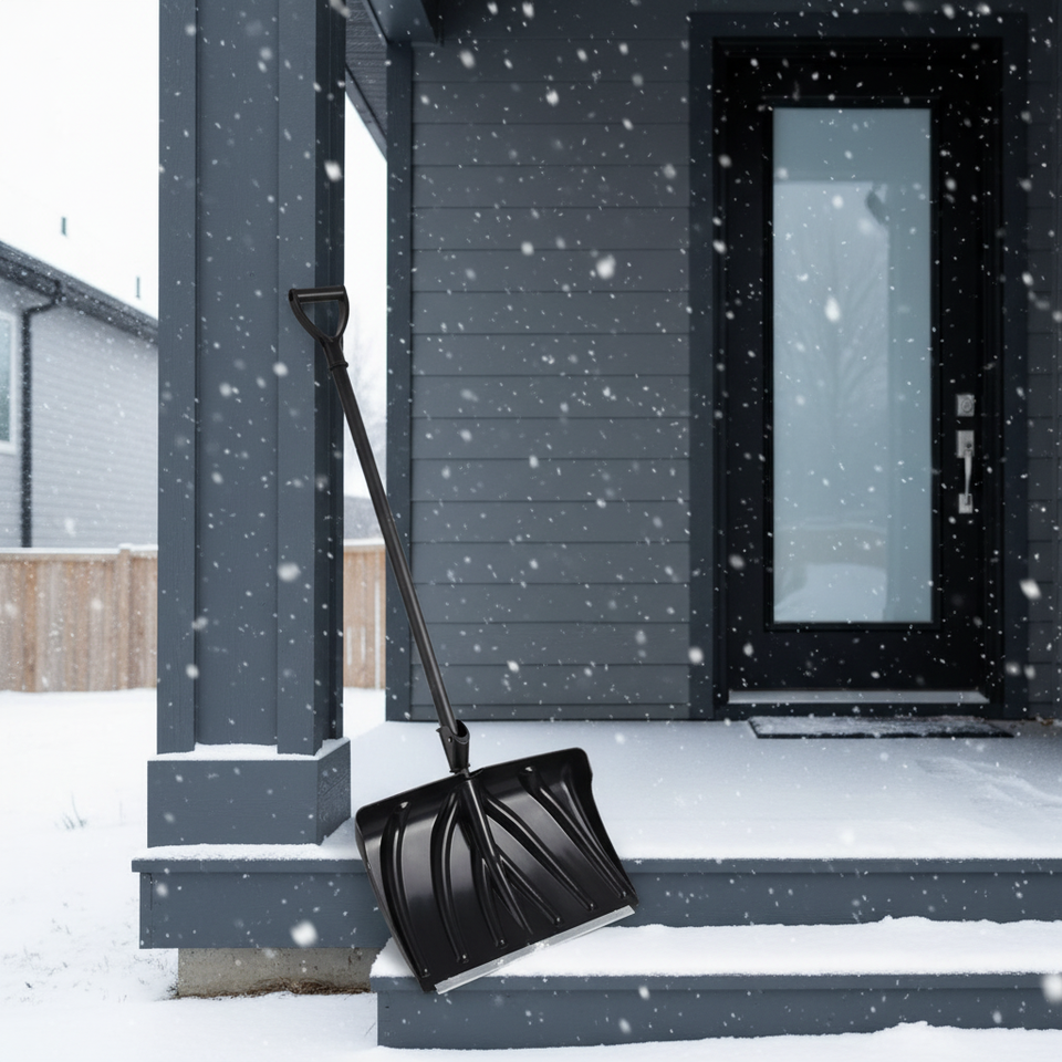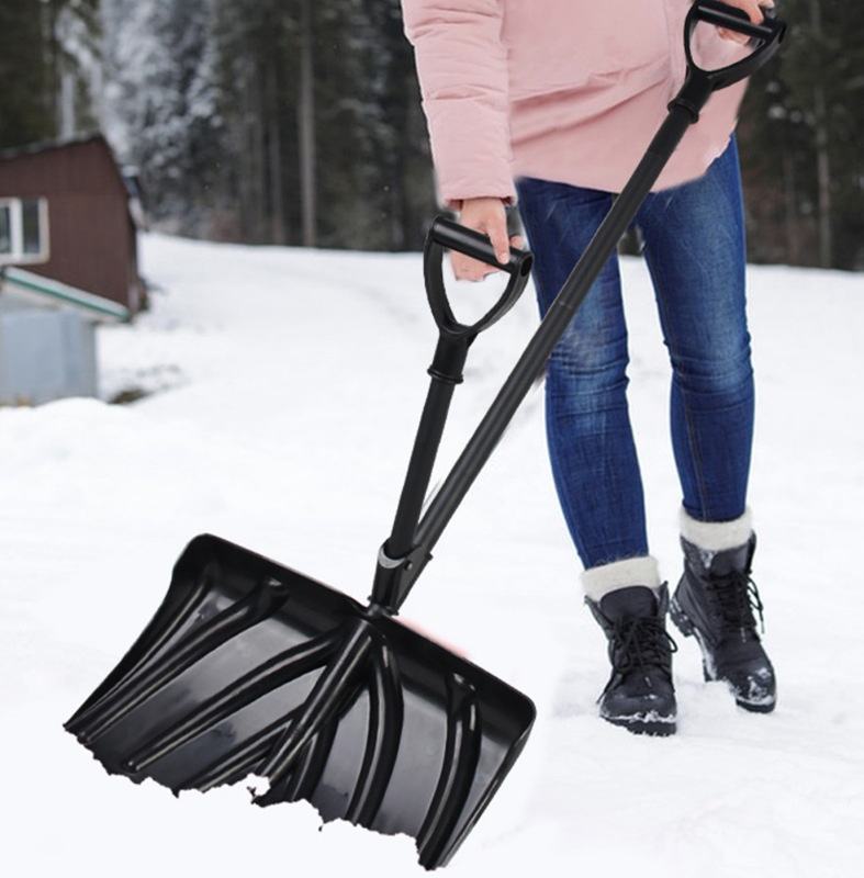 Venta al por mayor de fábrica: Pala quitanieves de 18 pulgadas con doble mango, modelo dos en uno, tipo que ahorra esfuerzo, con hoja de plástico y pala para almacenamiento de granos
