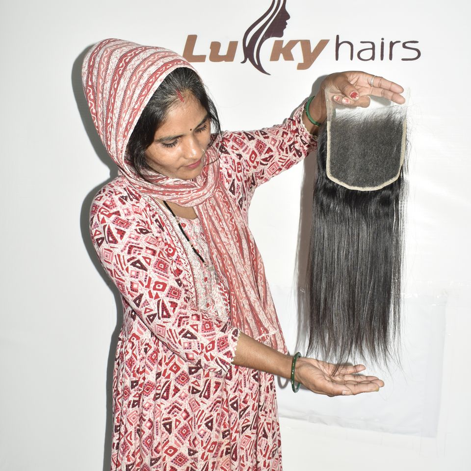 Extensiones de Cabello Humano Virgen Remy Sin Procesar al por Mayor de Fábrica, Cabello Indio Liso con Cierre de Encaje 6*6 HD, Ondas y Rizos, Precio Económico