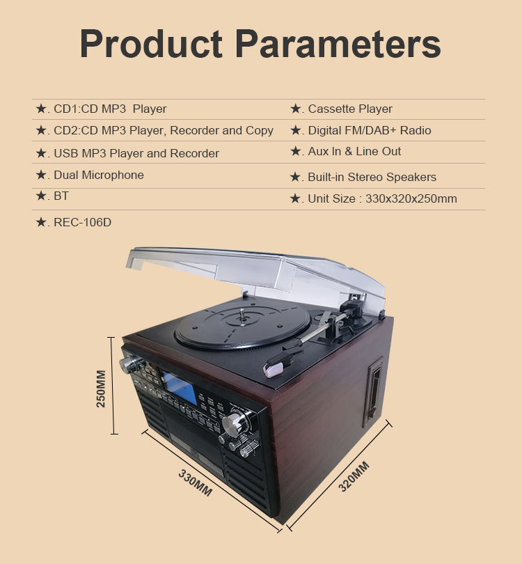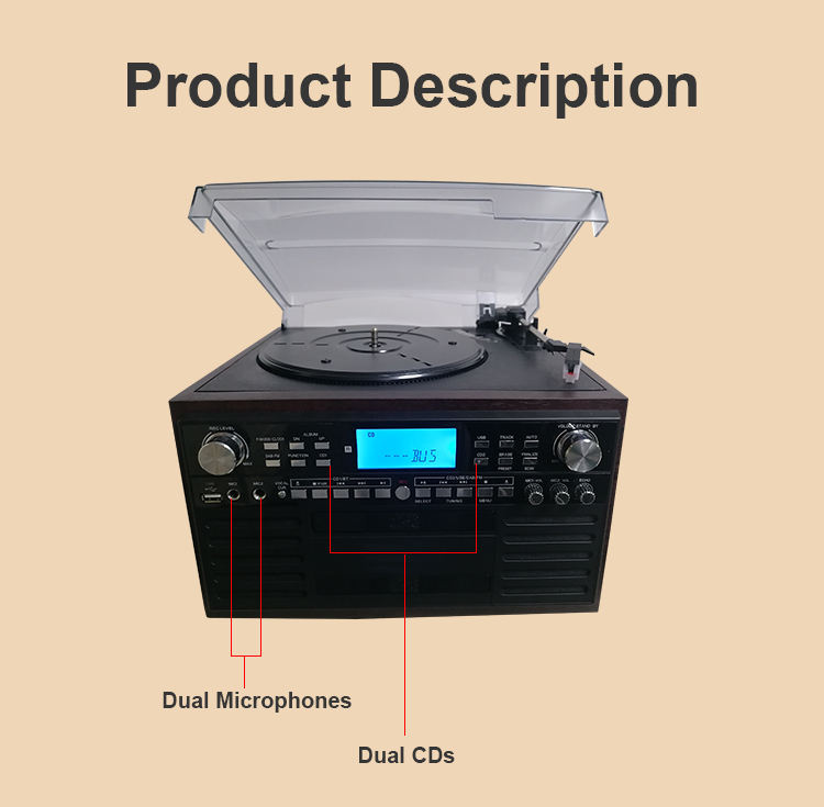 Fábrica al por mayor de vinilo tocadiscos Karaoke USB CD Cassette reproductor
