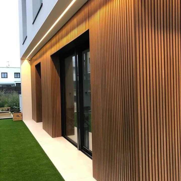 Panel de Techo Acordonado WPC, Rejilla Decorativa Coextruida, Panel de Pared ASA Resistente al Agua para Fachada Exterior, Venta al Por Mayor de Fábrica